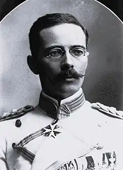 - ↑ Il est observateur de la guerre hispano-américaine à Cuba en 1898 avec le colonel Roosevelt