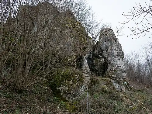 - ↑ (de) Thomas Striebel, « Höhlen im Gebiet der Stadt Blaubeuren », Das Jahresheft 1995 der Arge Grabenstetten - Ausgabe zum VDHK-Jahrestreffen 1996 in Blaubeuren, vol. 15, , Große Rusenschloßhöhle (Große Grotte) 7524/03 (lire en ligne [PDF], consulté le ).