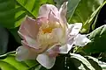 Les fleurs mesurent de 9 à 20 cm de diamètre. Le calice est généralement ondulé, haut de 1 à 2,5 mm, ou moins fréquemment de 4 lobes peu profonds, largement arrondis ou triangulaires, avec des lobes mesurant 2-5 x 8-14 mm. Les (6-)8(-9) pétales sont oblongs, obovales, ou oblancéolés, mesurant 25-95 x 15-50 mm, de couleur rouille à gris pubescent dans le bourgeon, pubérulent à l'anthèse, blanc à l'intérieur et à l'extérieur, avec des teintes de rose à l'extérieur, surtout vers l'apex. La base de l'androcée est connée, haute de 8-19 mm, avec de filets externes longs de 10-24 mm, blancs à la base, souvent roses vers l'apex, les anthères jaunes, longues de 2-4 mm. L'ovaire est généralement sans costae, pubérulent ou pubescent, à 4-7 loges, à sommet blanc-pubescent à blanc-tomenteux, le style conique, long de 1-3 mm.