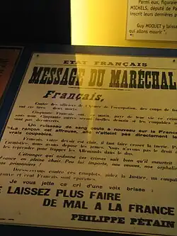Message du maréchal Pétain.