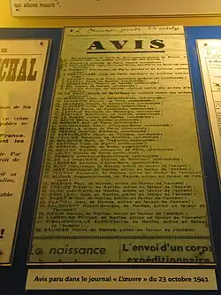 Avis paru dans L'Œuvre du  : liste des 48 fusillés du .