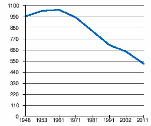 - 1 2 (sr + en) « Livre 20 : Vue d'ensemble comparative de la population en 1948, 1953, 1961, 1971, 1981, 1991, 2002 et 2011, données par localités) » [PDF], pages du recensement de 2011 en Serbie - Institut de statistique de la république de Serbie, (consulté le )