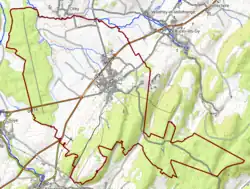 L'occupation des sols de la commune, telle qu'elle ressort de la base de données européenne d’occupation biophysique des sols Corine Land Cover (CLC), est marquée par l'importance des forêts et milieux semi-naturels (49 % en 2018), en diminution par rapport à 1990 (49,9 %). La répartition détaillée en 2018 est la suivante : forêts (45 %), terres arables (26,4 %), zones agricoles hétérogènes (11,9 %), prairies (8,6 %), milieux à végétation arbustive et/ou herbacée (4 %), zones urbanisées (3,5 %), mines, décharges et chantiers (0,6 %)[12]. L'évolution de l’occupation des sols de la commune et de ses infrastructures peut être observée sur les différentes représentations cartographiques du territoire : la carte de Cassini (XVIIIe siècle), la carte d'état-major (1820-1866) et les cartes ou photos aériennes de l'IGN pour la période actuelle (1950 à aujourd'hui)[Carte 1].