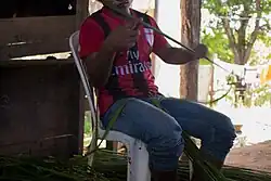 En Colombie, les Zenú emploient traditionnellement les fibres de Gynerium sagittatum dans leur artisanat[23],[24]. Cette pratique s'est répandue dans le pays pour l'élaboration artisanale d'objets comme des tapis, des paniers et des chapeaux, et notamment le sombrero vueltiao, symbole par excellence de la culture côtière colombienne. Les fibres sont obtenues à partir de la nervure centrale des feuilles, au moyen d'un processus complexe.