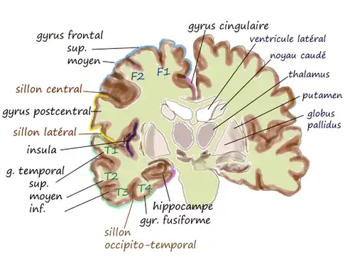 | Gyrus de la face médiale | Coupe coronale |
