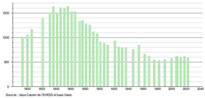 - ↑ Fiches Insee - Populations de référence de la commune pour les années 2006, 2007, 2008, 2009, 2010, 2011, 2012, 2013, 2014, 2015, 2016, 2017, 2018, 2019, 2020, 2021 et 2022.