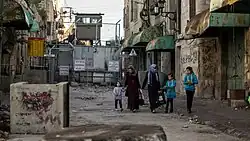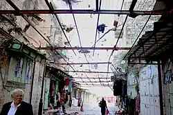 Dans la vieille ville située dans le secteur H2, sous souveraineté israélienne, des grillages sont installés par les Palestiniens au dessus les ruelles ou patios afin de se protéger des déchets lancés de leurs fenêtres par les colons israéliens[41],[42].