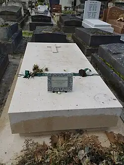 Elle est inhumée au cimetière du Montparnasse (division 27, grand cimetière)[50].