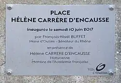 - ↑ « Oullins inaugure la place Hélène Carrère d'Encausse », sur mlyon.fr, .