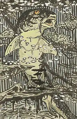 Brochet, sandre et anguille, vers 1922, encre de Chine et gouache sur papier, 25 × 32 cm