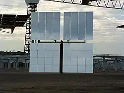 L’héliostat est également utilisé dans les centrales solaires où plusieurs héliostats, appelés champs d’héliostats et fonctionnant de concert sont utilisés. Un champ d’héliostats fait converger les rayons lumineux vers un même point, concentrant ainsi la lumière[5]. Un exemple en France en est la centrale solaire Thémis qui, après avoir fonctionné de 1983 à 1986, fait l’objet d’une nouvelle expérimentation depuis 2008.