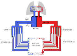 Le sang enrichi quitte le cœur via une série d'artères. Plus loin, le diamètre de ces artères se rétrécit et les artères sont alors appelées des artérioles. Ces artérioles deviennent des capillaires et éventuellement des veinules, où le sang appauvri retourne vers le cœur grâce à des réseaux de veines. La microcirculation, les jonctions artériole-capillaire-veinule composent la partie essentielle du système vasculaire.