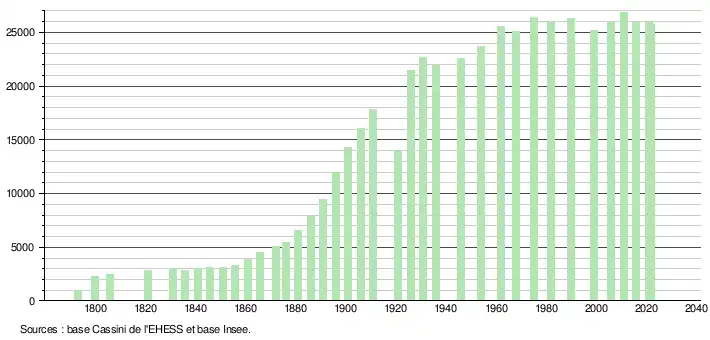 - ↑ Fiches Insee - Populations de référence de la commune pour les années 2006, 2007, 2008, 2009, 2010, 2011, 2012, 2013, 2014, 2015, 2016, 2017, 2018, 2019, 2020, 2021 et 2022.