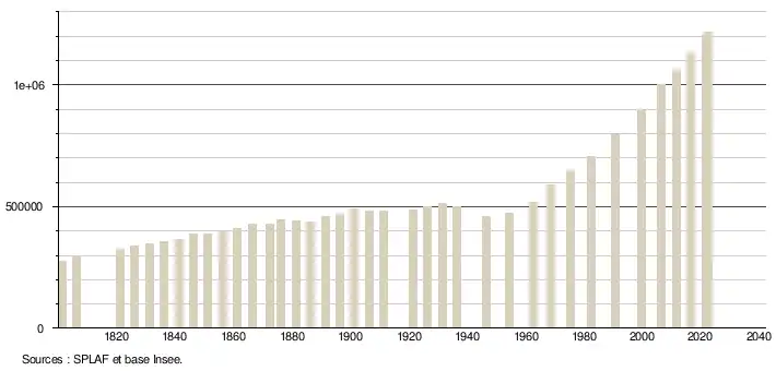 - ↑ Population municipale de référence en vigueur au 1er janvier 2025, millésimée 2022, définie dans les limites territoriales en vigueur au 1er janvier 2024, date de référence statistique : 1er janvier 2022.