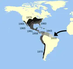 Le héron garde-bœufs a connu l'une des plus rapides et importantes extensions naturelles de toutes les espèces d'oiseaux[11]. Originaire des régions du sud de l'Espagne et du Portugal, d'Afrique tropicale et subtropicale et d'Asie tropicale humide et subtropicale, il était connu dans l'Égypte antique dès l'ancien empire, où il est représenté sous forme de hiéroglyphe. À la fin du XIXe siècle, il a commencé à élargir son territoire vers le sud de l'Afrique, la première reproduction connue dans la province du Cap ayant eu lieu en 1908[12]. Le héron garde-bœufs a été aperçu pour la première fois en Amérique à la frontière de la Guyane et du Suriname en 1877, après avoir apparemment survolé l'océan Atlantique[13],[1]. Ce n'est que dans les années 1930 qu'on considèrera que l'espèce s'est implantée dans la région[14].