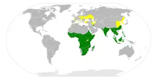 Il niche des tropiques jusqu'aux zones semi-tempérées, dont en Europe, dans le sud de l'Asie et en Afrique. Les oiseaux européens hivernent presque tous en Afrique tropicale, avec parfois quelques oiseaux hivernant en Europe. En Europe, la Russie, l'Ukraine, l'Espagne, la France et l'Italie hébergent 80% de la population nicheuse européenne[3].