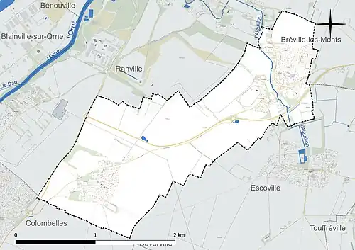 Les communes limitrophes sont Bréville-les-Monts, Colombelles, Escoville et Ranville.