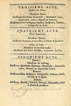 | Vénus | soprano | Marie-Louise-Antoinette Desmatins |
