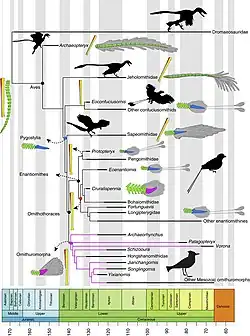 - ↑ CHUNLING GAO, LUIS M. CHIAPPE, QINJING MENG et JINGMAI K. OCONNOR, « A NEW BASAL LINEAGE OF EARLY CRETACEOUS BIRDS FROM CHINA AND ITS IMPLICATIONS ON THE EVOLUTION OF THE AVIAN TAIL », Palaeontology, vol. 51, no 4, , p. 775–791 (ISSN 0031-0239 et 1475-4983, DOI 10.1111/j.1475-4983.2008.00793.x, lire en ligne, consulté le )