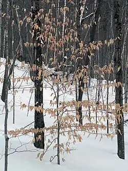 Hêtre à grandes feuilles en hiver dans la réserve nationale de faune du Cap-Tourmente