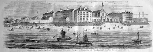 La construction, prévue pour cinq cents lits, débute avec l'adjudication des travaux le et se termine officiellement par l'inauguration, le [14], de l'« Hôpital Napoléon » par l’Impératrice Eugénie et le Prince impérial accompagnés par de nombreux invités.