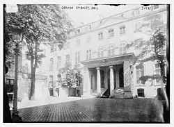 L'hôtel devient l'ambassade officielle de la Prusse en 1862. Otto von Bismarck, qui y est brièvement ambassadeur entre mai et septembre de la même année, écrit à son épouse à propos du bâtiment : « On pourrait être partout à la forêt ou à la campagne. Tout est tourné vers le nord, est froid et humide, sent le renfermé et le cloaque », même si cela aurait été pour dissuader cette dernière de le rejoindre. Il y revient en avec Guillaume Ier pour assister à l'exposition universelle. Une réception a lieu à l'hôtel, où est invité Napoléon III (après s'être rendu à l'ambassade austro-hongroise et celle de la Russie) ; un diplomate écrit : « Vers 23 heures, grosses bousculades : l'empereur arrive avec l'impératrice. Pendant ce temps, Bismarck se tient près du tonneau de bière dans le jardin »[2].