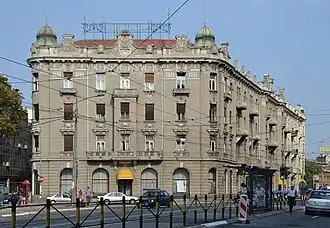L'hôtel Bristol, situé 50 rue Karađorđeva, et a été conçu pour abriter l'Association pour l'assurance et le crédit de la coopérative de Belgrade ; il a été construit entre 1910 et 1912, selon les plans de Nikola Nestorović, l'un des architectes les plus importants de cette époque. Le bâtiment est considéré comme le premier hôtel moderne de Belgrade et comme une sorte d'anthologie de l'architecture contemporaine serbe de cette époque. Sur le plan architectural, il appartient à l'école de l'Art nouveau. Il constitue également l'une des réalisations les plus abouties de l'architecte Nikola Nestorović[1].