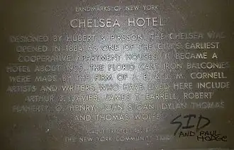 En 1977, l'Hôtel Chelsea est inscrit au Registre national des lieux historiques. Il est le premier à être inscrit par la ville de New York sur la liste des bâtiments à préserver pour leur intérêt historique et culturel.