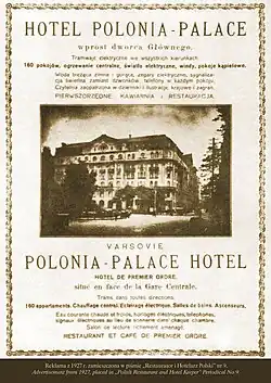 - ↑ Louis Gerber, Polonia Palace Hotel History, photos and review at Cosmopolis.ch, January 17, 2014.