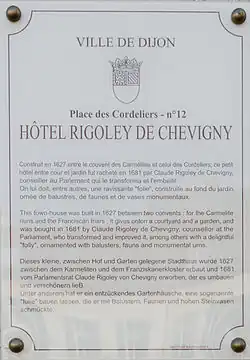- ↑ « Hôtel Rigoley de Chevigny », notice no PA00112431, sur la plateforme ouverte du patrimoine, base Mérimée, ministère français de la Culture