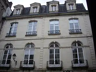 Ce bâtiment est d'une architecture sobre sur trois niveaux[1] : rez-de-chaussée en granite et étages en pierre blanche[1]. La façade sur la rue des Orfèvres est toutefois recouverte de tuffeau[2]. De nombreuses ouvertures en plein cintre égayent les façades, ainsi que des balcons en fer forgé sur la rue des Orfèvres[2]. Les combles, recouverts d'ardoises, sont entrecoupés de lucarnes à frontons triangulaires[1]. À l'intérieur, un bel escalier en bois du XVIIe siècle témoigne du bâtiment initial[3].