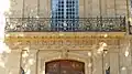 De chaque côté de l'avant-corps, et sur chacun des étages, s'ouvrent trois fenêtres hautes, ornées d'une grille en fer forgé sur le premier et le second étages.