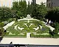 On y accède directement depuis le salon chinois et la grande galerie dont il est le prolongement lors des réceptions. Un bassin circulaire est encadré de quatre parterre de gazon ponctués de buis boule.