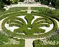 Organisé autour d'une palmette végétale, d'après un dessin de Robert de Cotte, il est bordé de buis, de rosiers et chênes verts, d'ifs, et d'une fontaine dite des Trois Tritons.