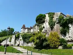 longe le logis ouestUn pavillon hexagonal ferme le côté est du domaine L'entrée, rue Barbecane