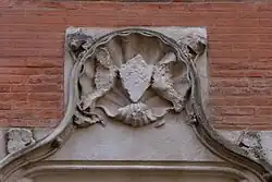 La porte est le seul élément conservé et visible aujourd'hui de l'hôtel. Elle est surmontée d'un écusson, martelé à la Révolution, soutenu par deux lions, eux aussi mutilés. Le blason représentait, autrefois, un chevron, chargé de trois coquilles, accompagné de trois étoiles. Il est lui-même posé dans une grande coquille[4].