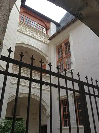 L'iconographie de l'édifice est riche, avec des éléments décoratifs tels que des pilastres, des candélabres, du feuillage, des symboles, des monogrammes, des représentations animales et humaines. Des hermines et les lettres "L" et "A" (en l'honneur de Louis XII et d'Anne de Bretagne) sont notamment visibles sur la porte de l'escalier et à l'intérieur de celui-ci, sur des culs-de-lampe.