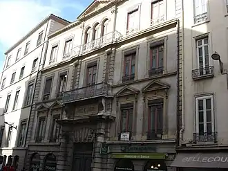 - ↑ D’après le dossier de l’Inventaire général du patrimoine, cette surélévation de la façade sud serait l’œuvre des architectes Bouilheres et Teyssere. Des appartements sont élevés au-dessus du porche d'entrée alors qu’auparavant « de chaque côté du portail se trouvait jusqu´alors une construction basse, d´un seul rez-de-chaussée formant magasin et reliant les deux bâtiments encadrant la cour. Ces deux petites constructions étaient couvertes par une terrasse à l´italienne bordée de balustres et de caisses à fleurs ».