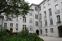 Sur la rue, la monumentale porte cochère cintrée date des réaménagements de 1771. Les plus superbes vestiges de l'édifice restent les deux escaliers placés face à face à l'angle des ailes en retour. Ils donnent sur la cour par des portes très soignées avec moulures, mais sont cependant très différents. À l'est, l'un est un escalier de service à mur noyau plein, tandis qu'à l'ouest, il s'agit d'un escalier d'honneur à deux noyaux dans une large cage avec des arcs rampants décorés de gros balustres carrés[1].