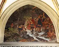 La salle de banquet du couronnement, temporairement divisée par des murs, est restaurée et dotée d'une nouvelle entrée, l'escalier de l'Arche. De plus, le peintre Alfred Rethel est chargé de décorer la salle avec un cycle de fresques à grande échelle. Le cycle, commencé en 1847 et achevé par un élève en 1861, présente des stations et des légendes de la vie de Charlemagne. C'est l'un des exemples les plus importants de la peinture d'histoire de la fin du romantisme, en particulier après la destruction de cycles comparables qui ornaient le Nouveau Musée de Berlin.