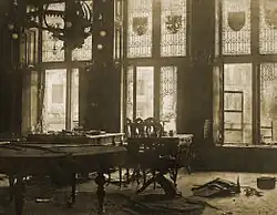 L'hôtel de ville d'Aix-la-Chapelle survit à la Première Guerre mondiale sans aucun dommage lié à la guerre. Lors des troubles politiques au cours des mouvements séparatistes pour la séparation d'une République rhénane, l'hôtel de ville est pris d'assaut le 21 octobre 1923 par un groupe d'alliés spéciaux et gravement saccagé. Une partie de la façade, des décorations des statues ainsi que les deux horloges des tours de l'hôtel de ville sont détruites, toutes les vitres du rez-de-chaussée côté marché sont brisées et de nombreuses pièces historiques de l'hôtel de ville sont dévastées. De nombreuses fresques de Rethel sont gravement endommagées par des impacts de balles. Le mobilier - en particulier celui de la chambre du maire et de la salle du couronnement - est brisé et utilisé comme projectile. Une bombe non explosée est retrouvée dans la salle impériale[7].