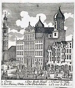 Au début du XVIIe siècle, le bâtiment ne suffit plus pour accueillir les diètes impériales : le gouvernement de la ville charge son architecte, Elias Holl d'élaborer un projet de transformation de l'édifice gothique, tout en conservant sa structure.