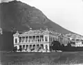 L'hôtel de ville de 1869, côté sud, avec la fontaine de Dent au milieu.