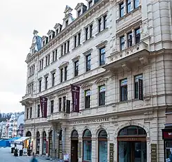 L'ancien hôtel de ville de Karlovy Vary sur la place du marché fut démoli en 1875, remplacé ensuite par la nouvelle Stadthaus, construite de 1892 à 1893 en style néo-Renaissance nordique[2]. L'édifice a servi jusqu'à la Seconde Guerre mondiale[3].