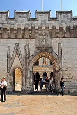 L'hôtel de ville de La Rochelle est composé d'un corps de logis de style Renaissance protégé par un mur d'enceinte de style gothique flamboyant, avec tours, chemin de ronde à créneaux et mâchicoulis et gargouilles érigé à la fin du XVe siècle.