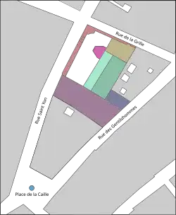 En 1909, Albert Ballu reprend le projet de Lisch d'extension de l'hôtel de ville sur la place de la Caille[18], mais faute de moyens la municipalité y renonce et achète peu à peu les maisons de l'îlot. Après de multiples travaux, certains services furent implantés dans les étages de ces bâtiments. Aujourd'hui, les services de la ville se sont étendus dans les étages des bâtiments et ne communiquent que par un dédale de couloirs et d'escaliers[19].