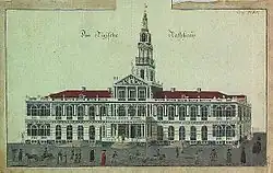L'hôtel de ville a été en grande partie détruit pendant la Seconde Guerre mondiale. Dès juin 1941, seuls les murs extérieurs étaient essentiellement conservés [5].