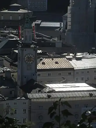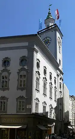 L'hôtel de ville de Salzbourg date du XIVe siècle. C'est une ancienne maison patricienne avec une façade rococo et une petite tour. C'est un bâtiment classé.