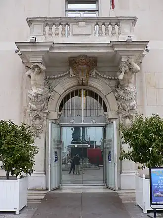 Les cariatides, sculptées par Pierre Puget dans le troisième quart du XVIIe siècle, sont en réalité des atlantes. L'ancienne porte date du XVIIIe siècle[1].