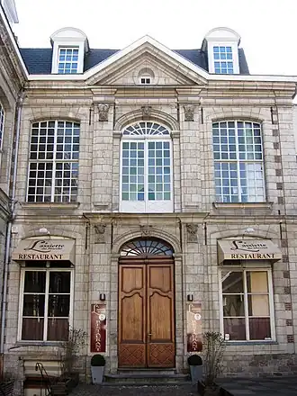 Derrière un porche qui ouvre sur la rue de la Monnaie, l'hôtel de style néoclassique français présente une façade très sobre, ornée de motifs Louis XV, rocailles et têtes.